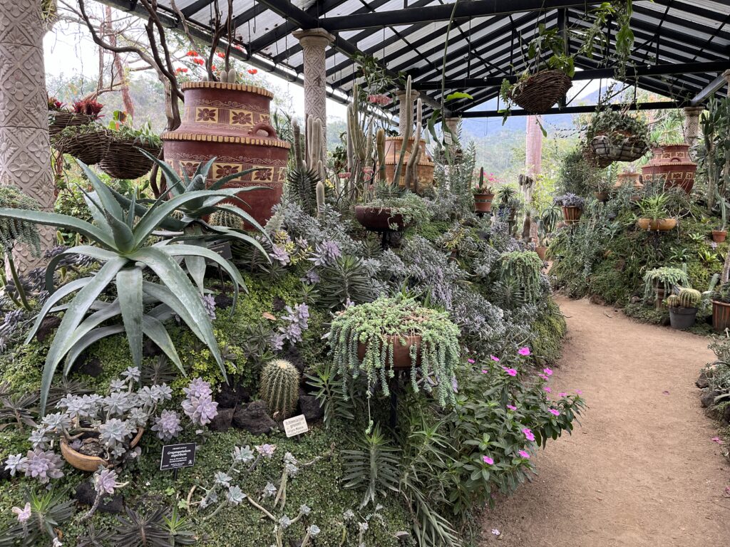 The garden’s restaurant offers local dishes made with fresh ingredients, complemented by spectacular mountain views.